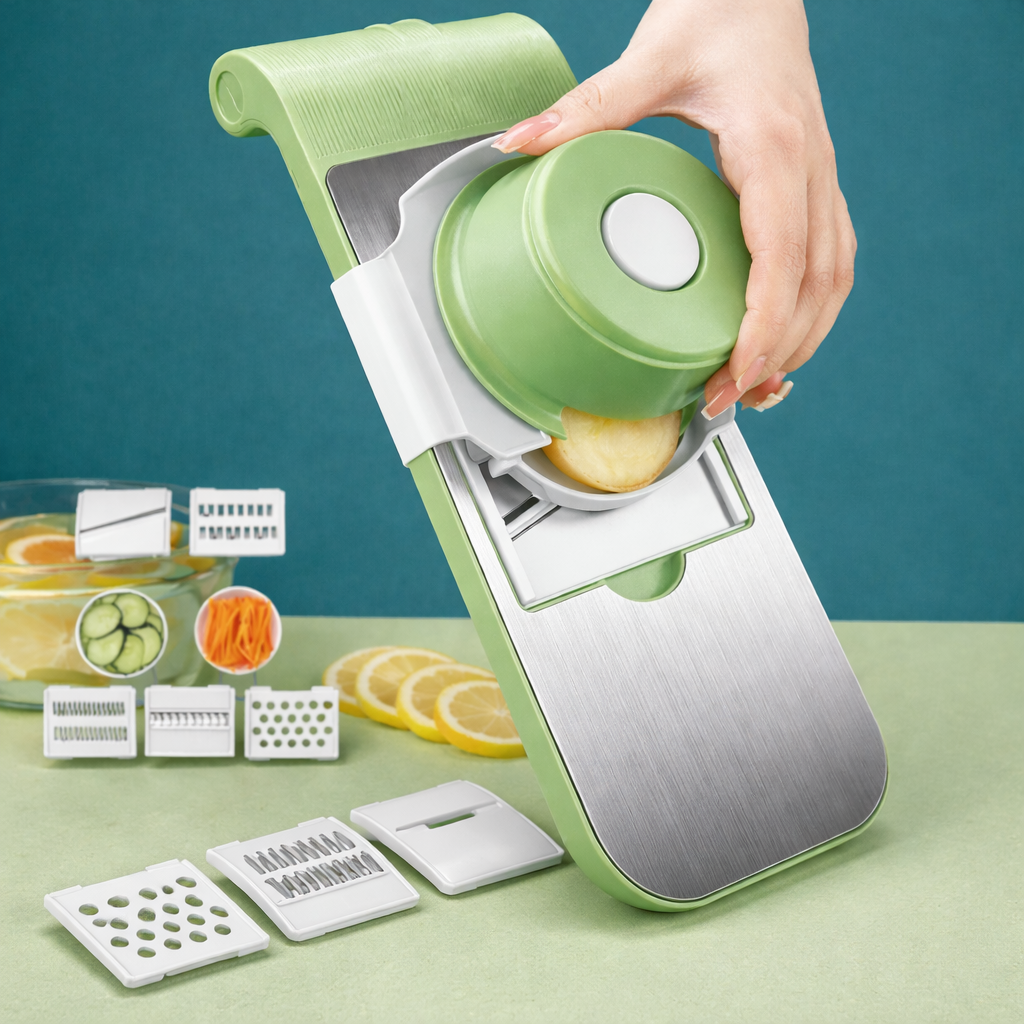 5-in-1 Multi-Blade Vegetable Slicer & Chopper – Onion, Potato & Garlic Cutter with Storage Bowl
