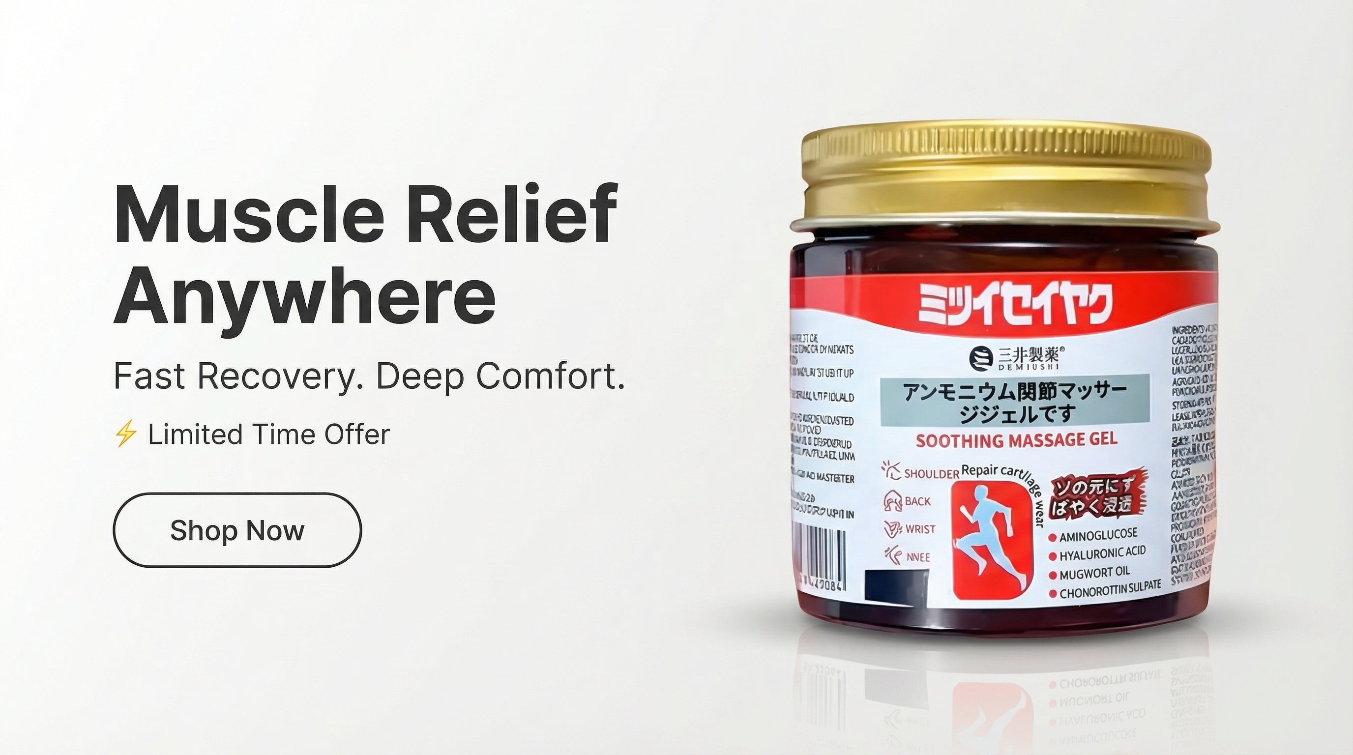 Japanese Soothing Massage Gel Experience the calming power of advanced Japanese formulation with this Soothing Massage Gel, designed to relax muscles, ease tension, and deliver fast-acting comfort right where you need it. 💆♂️ Key Features • Deep Muscle Relief – Helps reduce stiffness, soreness, and body fatigue• Fast Absorption Formula – Non-sticky gel that works instantly• Cooling & Soothing Effect – Provides refreshing relief on application ❄️• Skin-Friendly Ingredients – Gentle and safe for regular use• Multipurpose Use – Ideal for neck, shoulders, back, legs, and joints• Lightweight Texture – Smooth application with no oily residue 🌿 Why You’ll Love It...